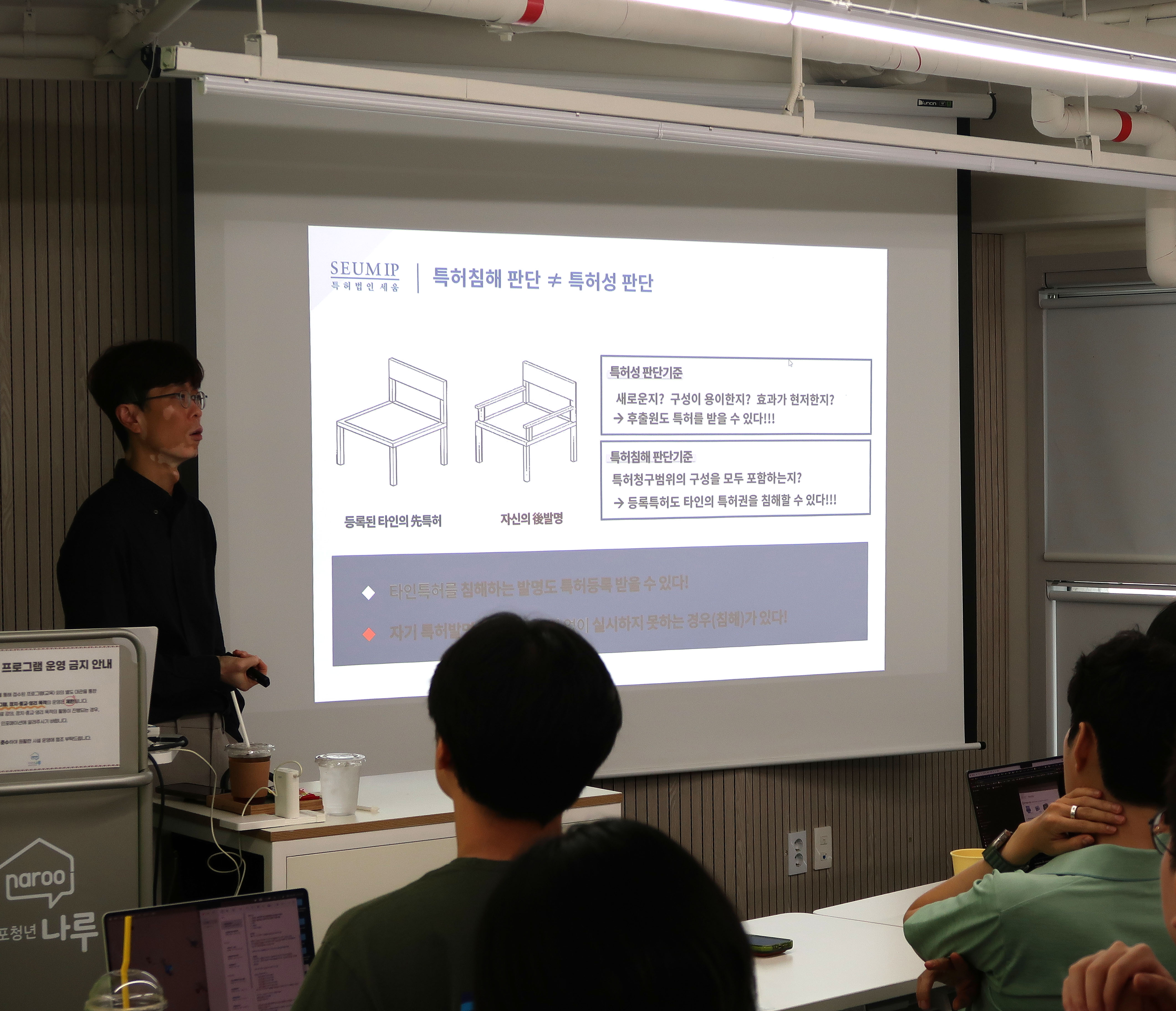 마포청년나루는 청년들의 취·창업을 지원하기 위해 다양한 무료 프로그램을 운영하는 공간으로, 이번 세미나에는 특허 및 출원 절차에 관심을 가진 예비 창업자들이 주로 참석하였습니다.