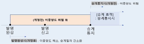 권리관계를 조속히 확정함으로써 이러한 분쟁을 줄이고 사용자의 절차적 부담을 완화하고자 개정법에서는 예약승계규정이 있는 경우에 발명이 완료되는 시점에 사용자가 소유권을 취득하도록 승계 시점을 앞당겼습니다.