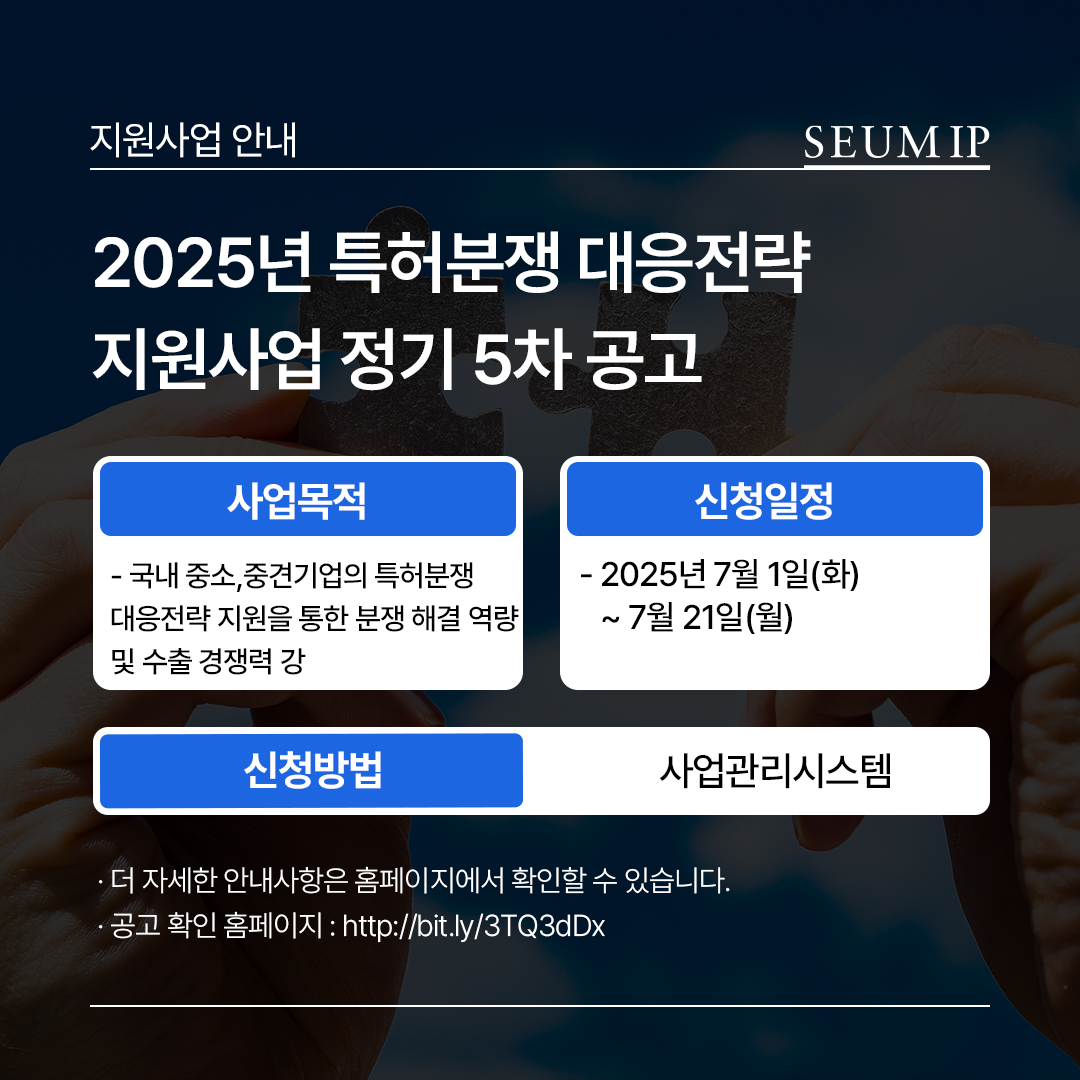 2025년 특허분쟁 대응전략 지원사업 5차 공고