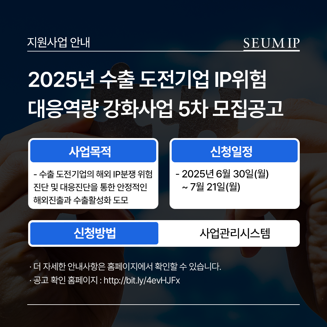 2025년 수출 도전기업 IP위험 대응역량 강화사업 5차 모집공고