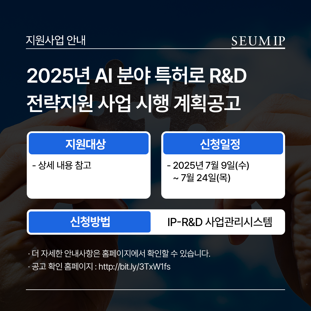 2025년 AI 분야 특허로 R&D 전략지원 사업 시행 계획 공고(AI 분야)